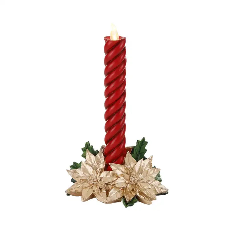 GOODWILL CENTROTAVOLA IN RESINA LUMINOSO, ALLA BASE CI SONO DELLE ELEGANTI STELLE DI NATALE NEL COLORE ORO CON AL CENTRO UNA LUSSUOSA CANDELA ROSSA CON LA FIAMMA LUMINOSA.
