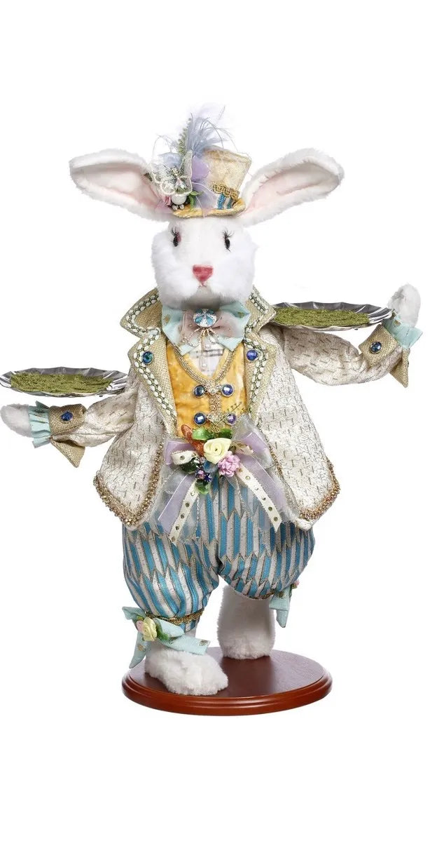 Un coniglio pasquale dall’aspetto distinto e signorile, con un portamento elegante e uno sguardo gentile e attento, come un impeccabile anfitrione di una festa primaverile. Il suo pelo è morbido e curato, luminoso sotto la luce delicata della primavera.