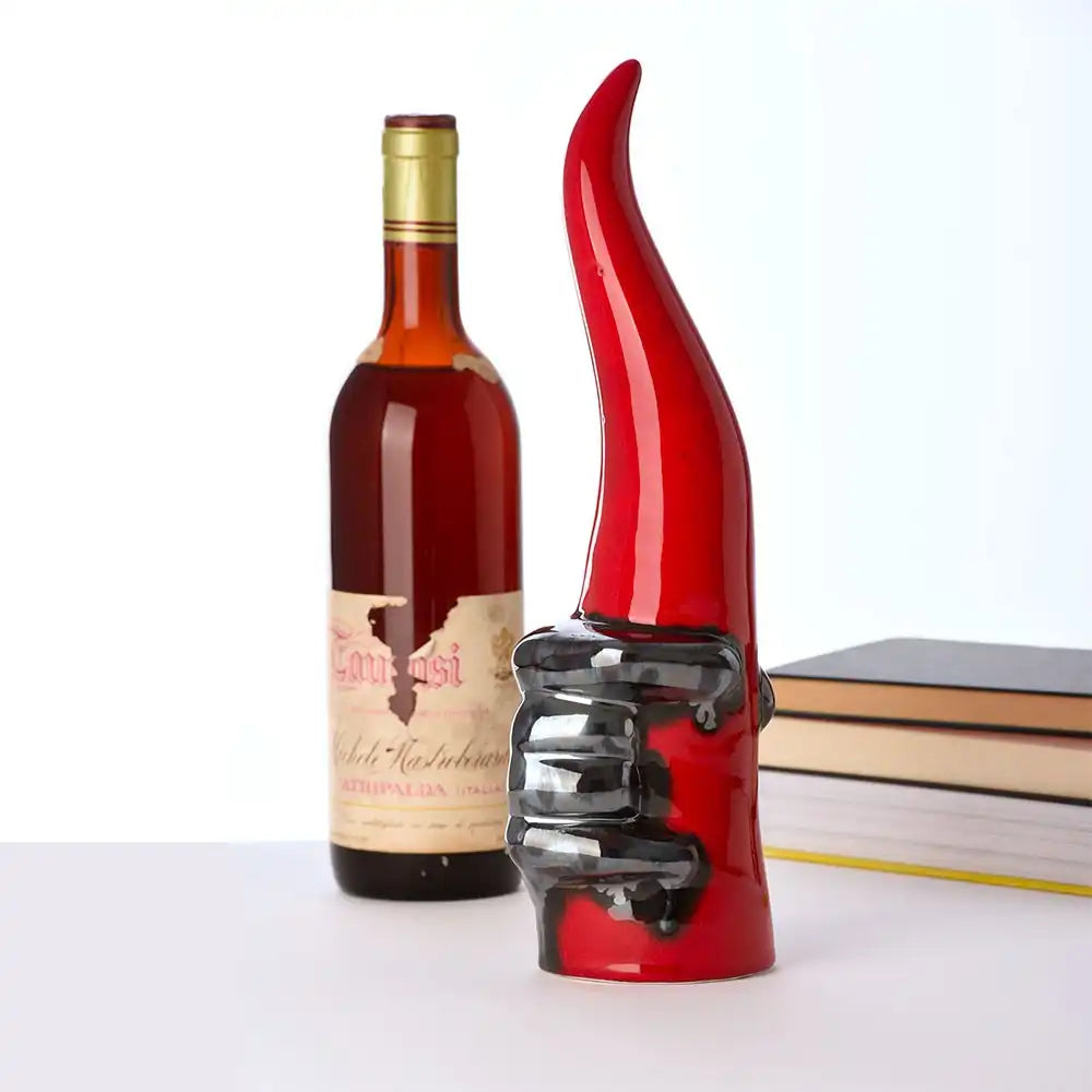 Questo particolarissimo oggetto scaramantico, il corno mano-corna di Macrì è una creazione artigianale, perfetto come complemento d'arredo ed idea regalo portafortuna.