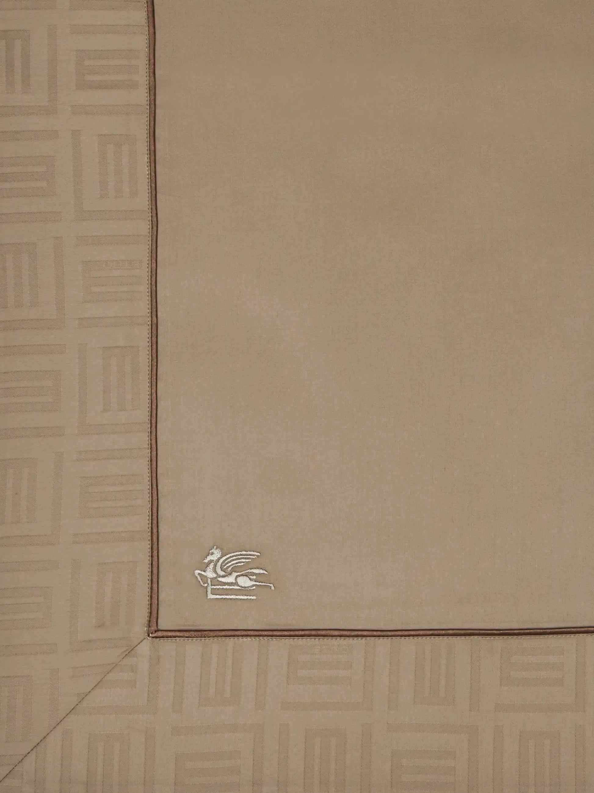 Completo lenzuola matrimoniale del marchio Etro, parte della prestigiosa collezione home. Realizzato al 100% in cotone, garantisce morbidezza e traspirabilità, ideale per un riposo confortevole.