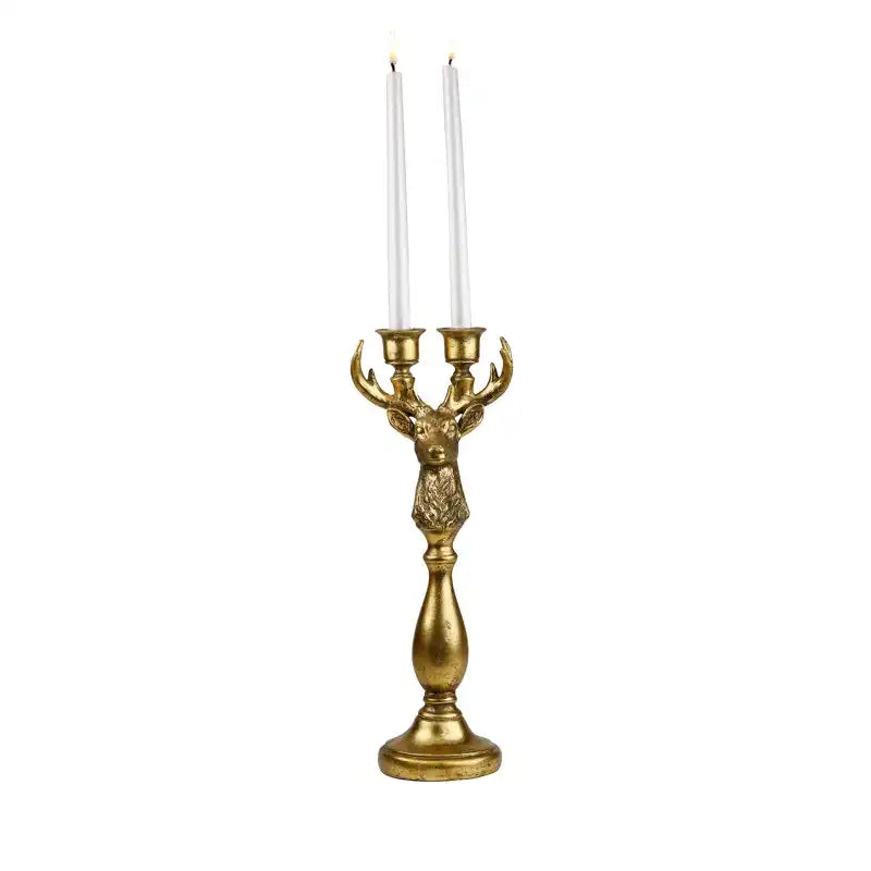 PORTA CANDELE CERVE IN RESINA COLRE ORO (CANDELE NON INCLUSE)