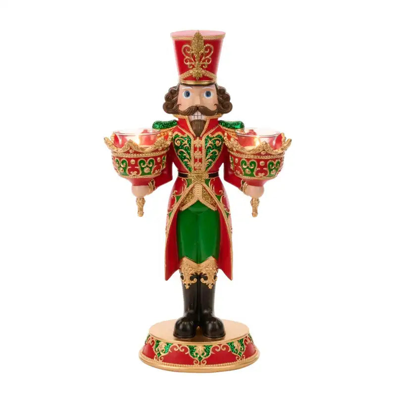 Affascinante schiaccianoci decorativo portacandele, cattura l'essenza dell'atmosfera natalizia con un tocco di gioia e festa.