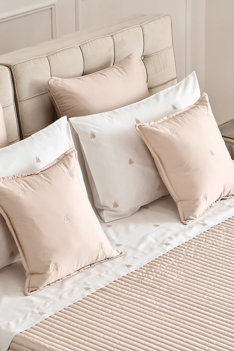 Set lenzuola in raso di cotone egiziano con ricamo Api sulle federe e sulla reverse del lenzuolo sopra. Federe a sacchetto.